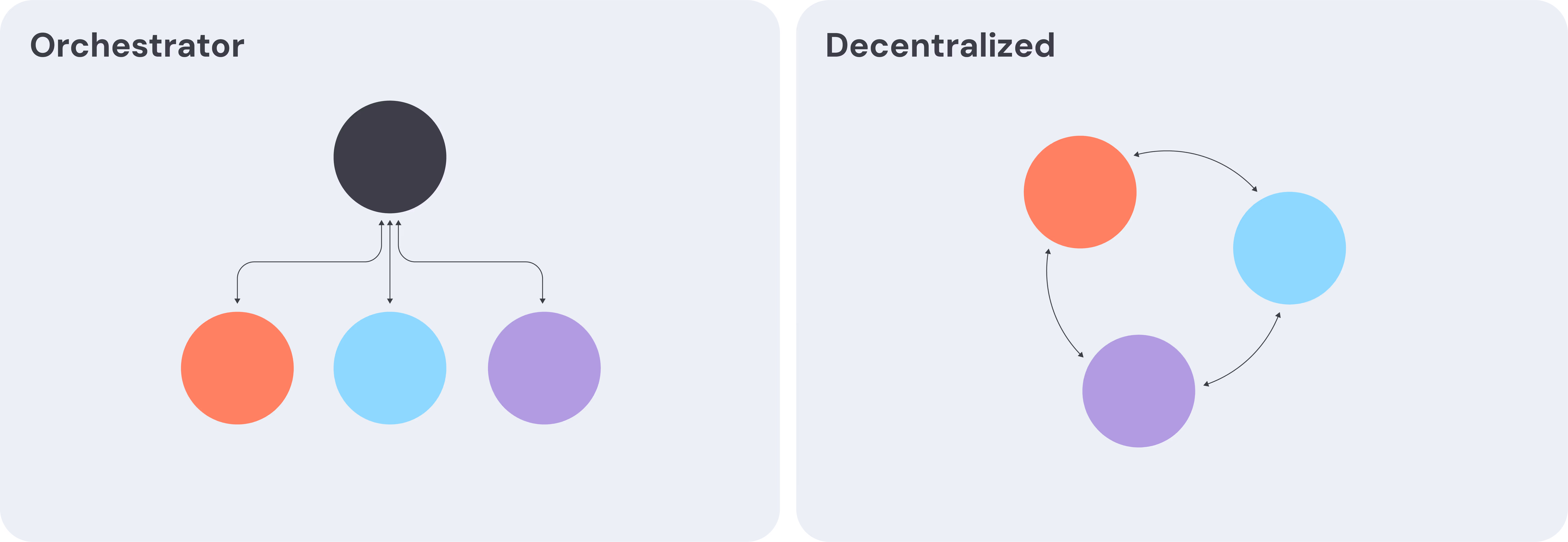 In customer conversations—especially voice—speed matters. A few hundred milliseconds can make the difference between a natural flow and an awkward lag that frustrates customers. Centralized architectures can sometimes introduce extra steps, since every decision and turn reroutes through the orchestrator.