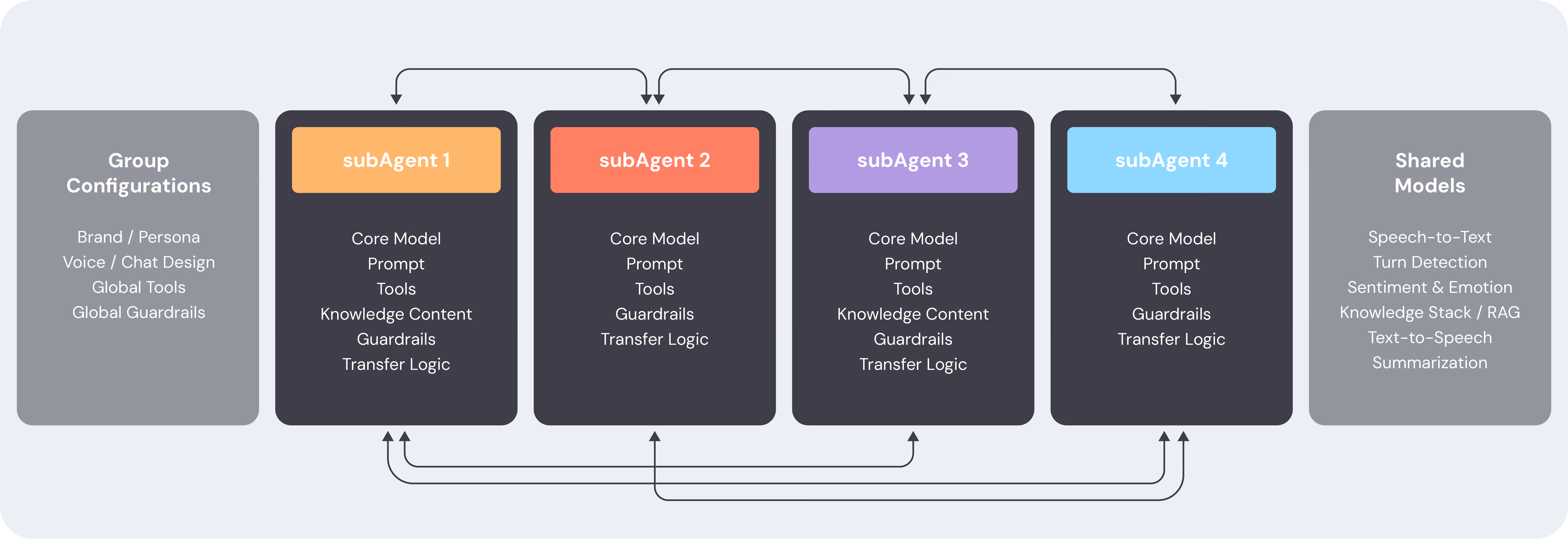 With a decentralized design, specialized agents work in parallel and can collaborate directly, rather than requiring a central orchestrator to determine what needs to happen next. This removes unnecessary round trips, reducing latency and unnecessary incremental cost. Customers hear responses almost as quickly as if they were speaking to a highly-trained human, not waiting for a decision tree to finish processing. This real-time capability is important for digital, voice, and blended omnichannel experiences, enabling immediate, natural-feeling service that helps keep customer satisfaction high.
