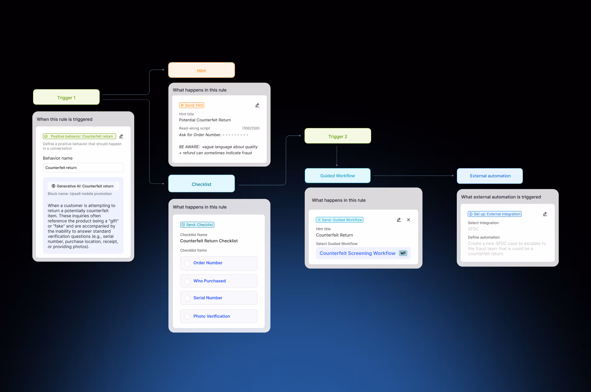 Create AI models that identify nuanced scenarios and behaviors across your customer conversations. With human-in-the-loop training, Opera can detect the moments that trigger AI workflows with unmatched precision and accuracy.