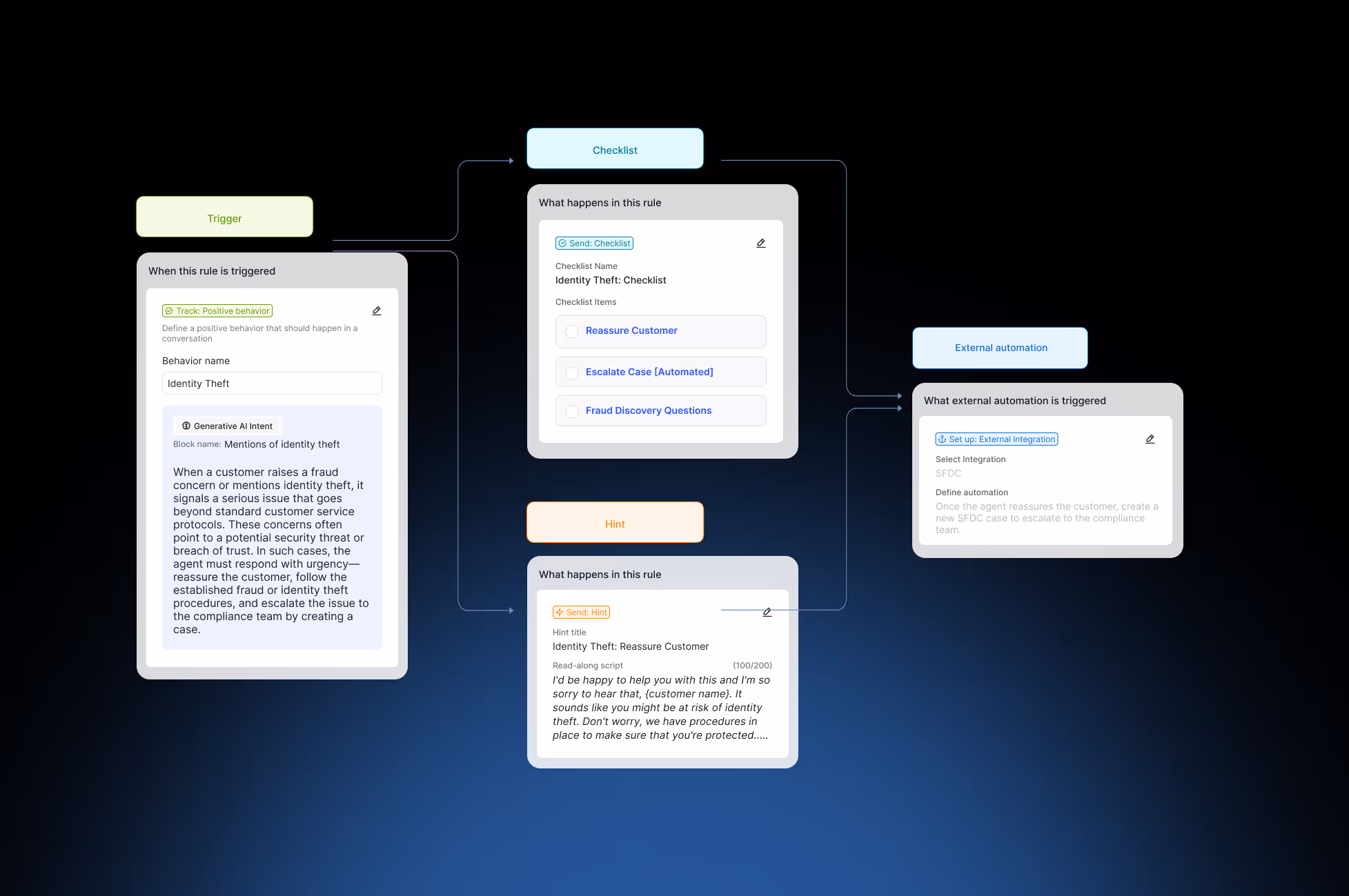 Opera lets you decide when to deliver real-time guidance to agents, track and evaluate performance, and automate processes. Tailor and deploy AI that moves the metrics that matter most to your business.